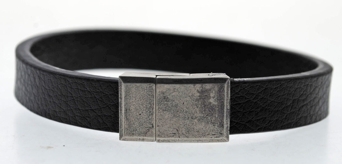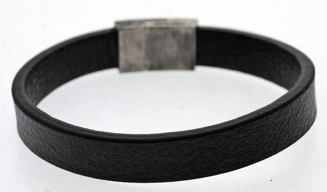 Pulsera negra cuero y acero quirurgico Mod 25